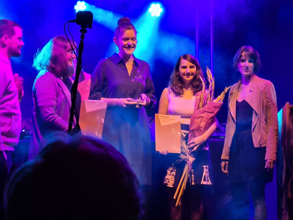 innen auf die Goldene Seidenschleife, den Modepreis,